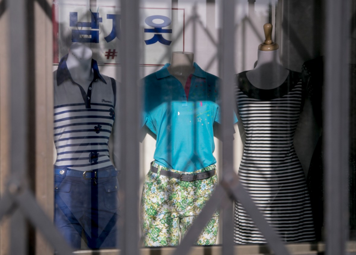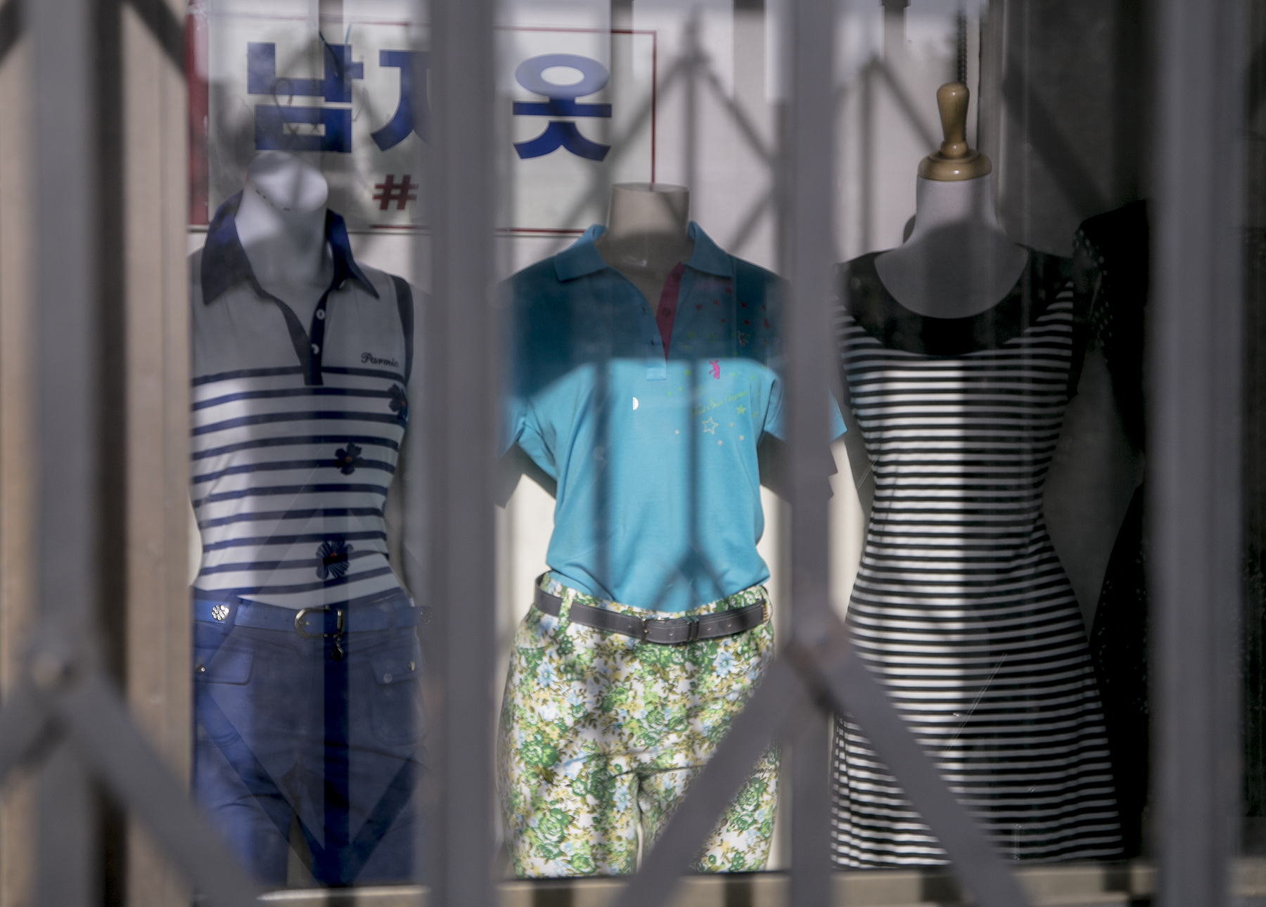 November 20, 2014 IMG_0955 Modern Korean fashions on display at a storefront on Western Avenue and James M. Wood Boulevard