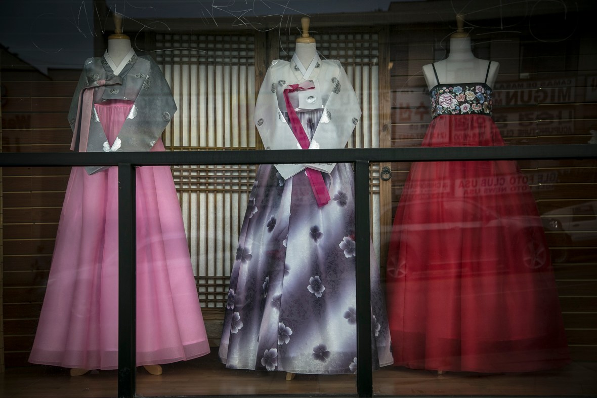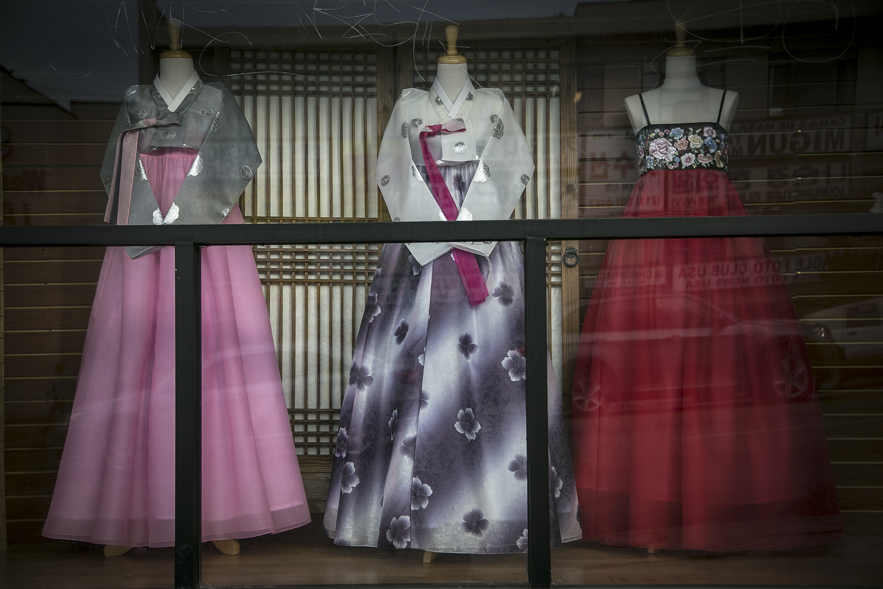 November 20, 2014 IMG_7149 Traditional Korean fashions on display at a storefront on 11th Street and Western Avenue