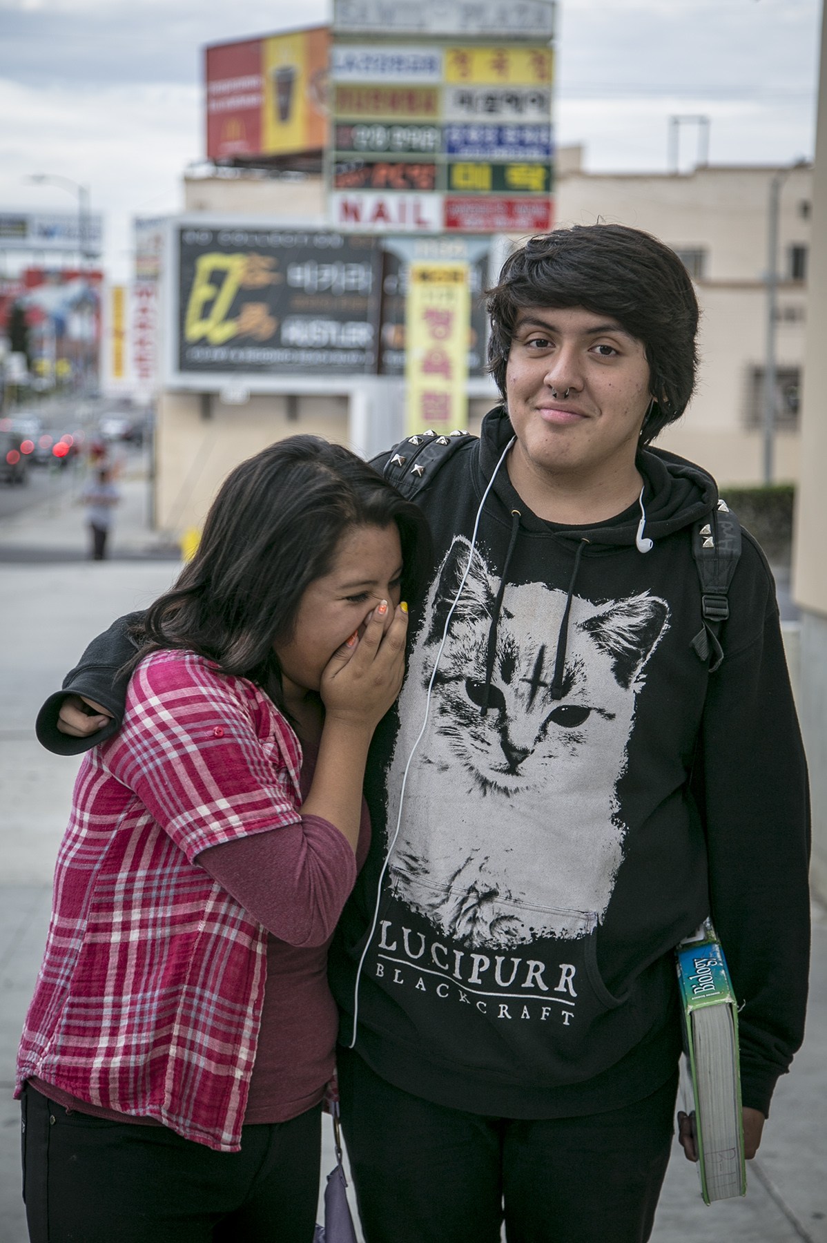 Xochitl and Ernesto grew up in Koreatown and go to high school together. Ernesto’s grandfather moved to the area from Mexico to raise his family. Ernesto said many people are nice here and share a common language. He added that many places he likes are walking distance from where he lives like arcades, pool halls, and the House of Blues further down Western Avenue on Sunset Boulevard