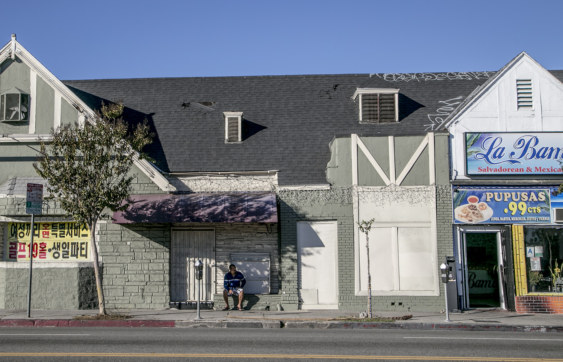 November 18, 2014 IMG_7304 A mixed use building on the corner of Ardmore Avenue and Beverly Boulevard shows an establishment aimed towards Korean speakers that is no longer in business and a Papusa restaurant . Papusas are a popular dish from El Salvador