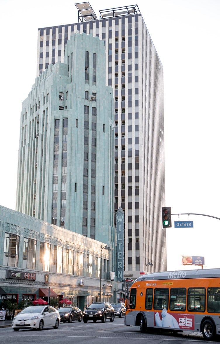 November 18, 2014 IMG_7427 The historic Wiltern Theater shares building space with a cafe and several shops across the street from the Metro Station on Western Avenue and Wilshire Boulevard