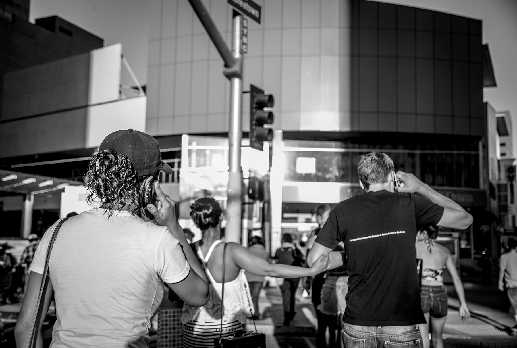 I used the lyrical mode to capture candid images of people on the move while walking through Koreatown. Street life is often vibrant depending on the time of the day. Each of the streets I chose are well populated and commercially dominant areas in Koreatown. During the day, people can be seen walking to school, work, church, or to visit friends or go shopping. In the evenings when nightlife establishments are open, more people can be seen walking to and from various bars and restaurants in the area. The three Metro Lines in Koreatown, one on Western Avenue with two on Vermont Avenue are usually always busy with foot traffic. These are major connecting points to other areas of Los Angeles transporting people to and from the area. Additionally, I had the opportunity to photograph Koreatown during the Korean Festival held each year at the Seoul International Park. This is a historically significant, cultural event that brings hundreds of people to the corner of Olympic Boulevard and Normandie Avenue to visit rows of food and product vendors, see K-pop and Korean traditional performers on a large stage, and watch the parade that travels from Vermont Avenue to just short of Western Avenue on Olympic Boulevard.