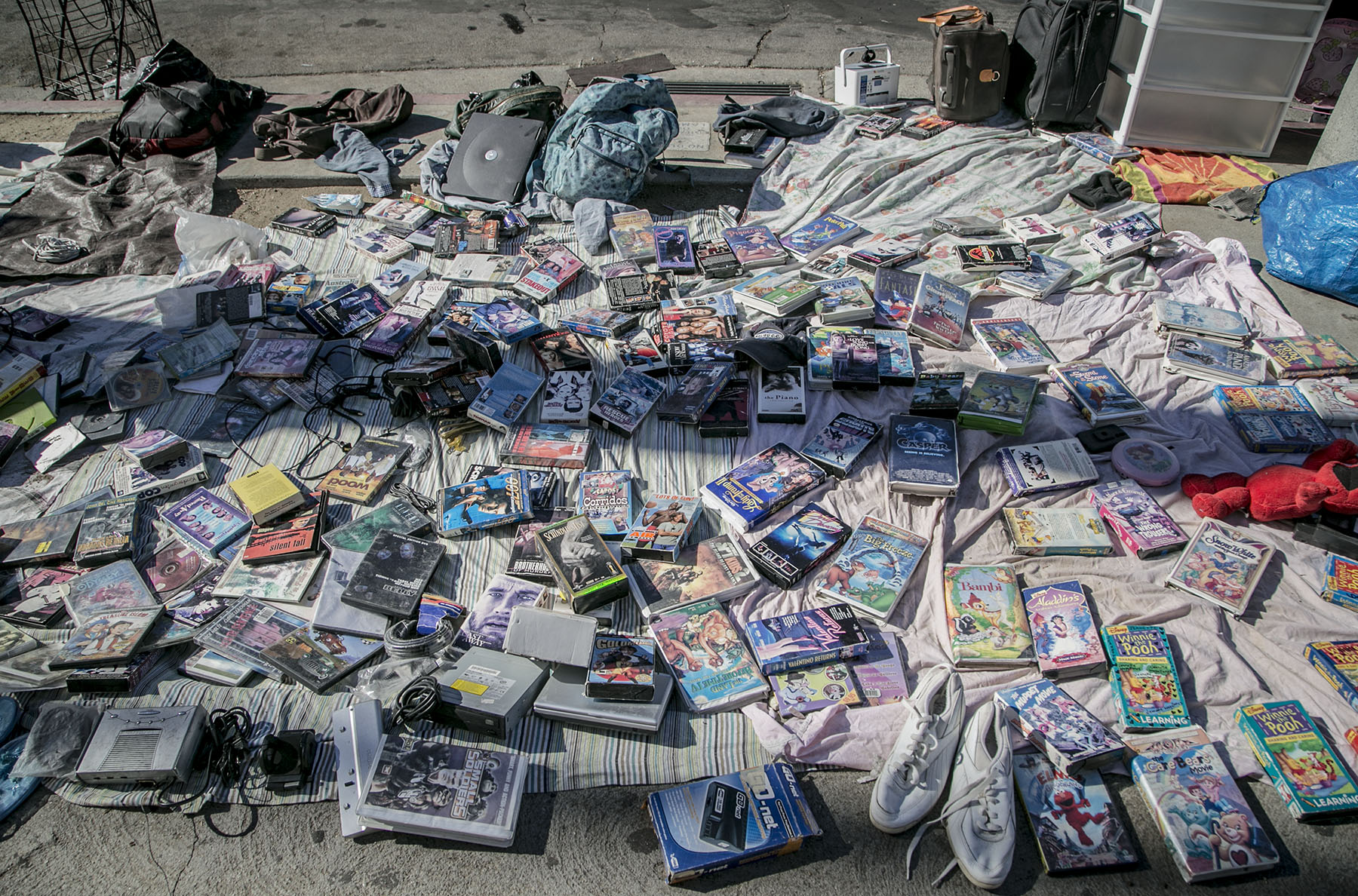 VHS tapes for sale at a swap meet on Kenmore Avenue and 3rd Street in the Little Bangladesh designation in Koreatown. There is a mix of Bengalis and Central Americans who live in the area